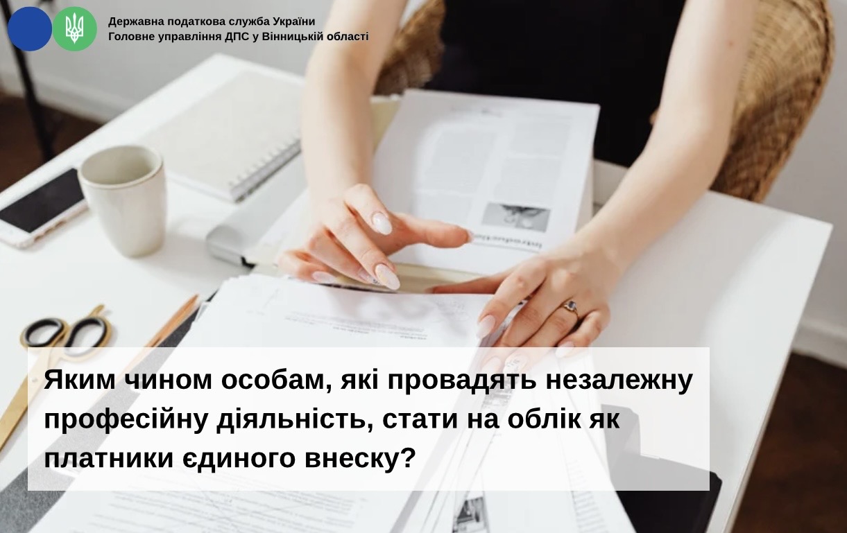 Управління податкових сервісів ГУ ДПС у Вінницькій області нагадує, що п. 5 частини першої ст. 4 Закону України від 08 липня 2010 року № 2464-VI «Про збір та облік єдиного внеску на загальнообов’язкове державне соціальне страхування» (далі – Закон № 2464) визначено, що платниками єдиного внеску на загальнообов’язкове державне соціальне страхування (далі – єдиний внесок) є особи, які забезпечують себе роботою самостійно - займаються незалежною професійною діяльністю, а саме науковою, літературною, артистичною, художньою, освітньою або викладацькою, а також медичною, юридичною практикою, в тому числі адвокатською, нотаріальною діяльністю, або особи, які провадять релігійну (місіонерську) діяльність, іншу подібну діяльність та отримують дохід безпосередньо від цієї діяльності, за умови, що такі особи не є найманими працівниками чи підприємцями.