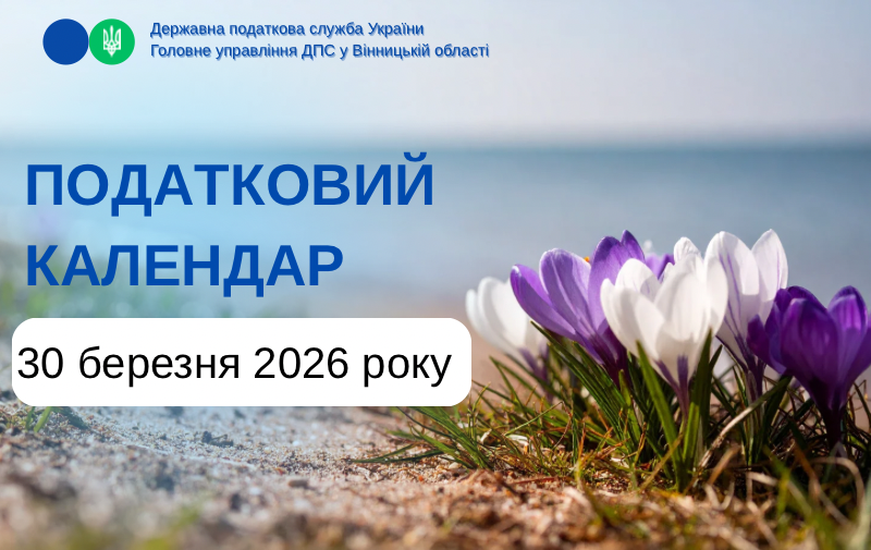 Головне управління ДПС у Вінницькій області повідомляє, що 30 березня 2026 року, понеділок, останній день сплати: