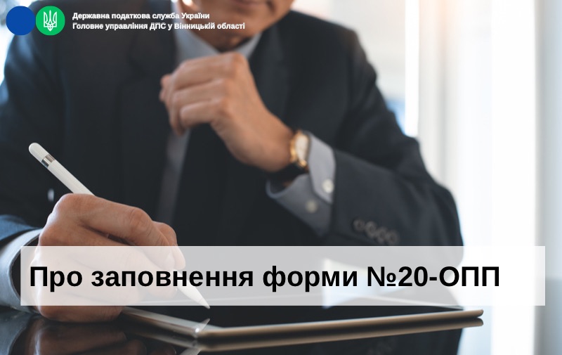 ГУ ДПС у Вінницькій області нагадує, що відповідно до наказу Міністерства фінансів України від 09.12.2011 №1588 із змінами і доповненнями, платник податків зобов’язаний повідомляти про всі об’єкти оподаткування і об’єкти, пов’язані з оподаткуванням, контролюючий орган за основним місцем обліку шляхом подання заяви про об’єкти оподаткування або об’єкти, пов’язані з оподаткуванням або через які провадиться діяльність за ф. № 20-ОПП у затвердженому порядку.