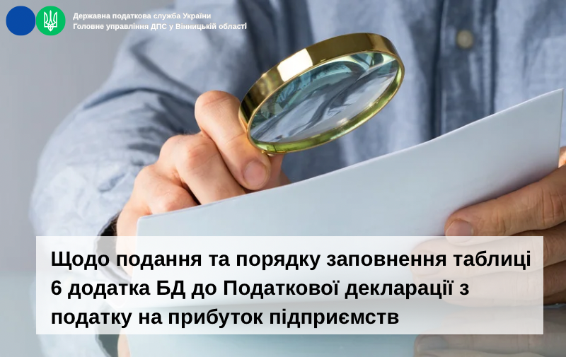 Управління оподаткування юридичних осіб ГУ ДПС у Вінницькій області від інформує, що Наказом Міністерства фінансів України від 25.07.2025 № 371 «Про затвердження Змін до форми Податкової декларації з податку на прибуток підприємств» внесено зміни до форми Податкової декларації з податку на прибуток підприємств, затвердженої наказом Міністерства фінансів України від 20.10.2015 № 897 (далі – Декларація), яку доповнено додатком БД до Декларації (рядки 3.1.9 БД, 3.1.13 БД, 4.1.25 БД додатка РІ до рядка 03 РІ, рядки 20 БД, 21 БД додатка ДІЯ (рядок 06.3 ДІЯ)) (далі – Додаток БД).