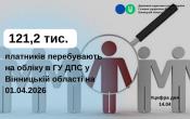121,2 тисячі платників перебувають на обліку в ГУ ДПС у Вінницькій області на 01.04.2026.