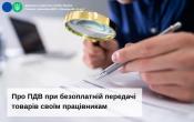 ГУ ДПС у Вінницькій області нагадує, що відповідно до пп. «а» п. 185.1 ст. 185 Податкового кодексу України, операції з безоплатної передачі товарів платником ПДВ (у тому числі, якщо такі товари передаються працівникам підприємства) є об’єктом оподаткування ПДВ та оподатковуються ПДВ у загальновстановленому порядку (крім окремих випадків, визначених ПКУ, та у разі, якщо вартість таких товарів не включається до вартості інших товарів/послуг, що постачаються таким платником податку (використовуються в оподатковуваних ПДВ операціях).