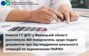 Комісія ГУ ДПС у Вінницькій області розглянула 460 повідомлень щодо подачі документів про підтвердження реальності операцій по відмовленим ПН/РКН