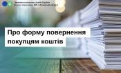ГУ ДПС у Вінницькій області звертає увагу на рекомендацію від ДПС України здійснювати повернення коштів у тій формі, в якій здійснювався розрахунок при продажу товарів, робіт, послуг, для полегшення обліку отриманої та повернутої торгівельної виручки, при цьому суб’єкт господарювання може змінити форму коштів при їх поверненні за попереднім погодженням із покупцем.
