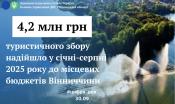 До місцевих бюджетів Вінниччини у січні-серпні 2025 року надійшло 4,2 млн грн туристичного збору