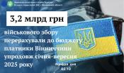 Платники Вінниччини упродовж січня-вересня 2025 року перерахували до бюджету 3,2 млрд грн військового збору.