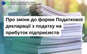 У документі йдеться, зокрема, про зміни до форми Податкової декларації з податку на прибуток підприємств, пов'язані з реалізацією положень Закону України від 25 лютого 2025 року №4254-ІХ «Про внесення змін до Податкового кодексу України щодо стимулювання благодійництва у період воєнного стану».