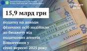 До бюджету від податкових агентів Вінниччини у січні-вересні 2025 року надійшло 15,9 млрд грн податку на доходи фізичних осіб.