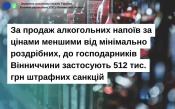 За продаж алкогольних напоїв за цінами меншими від мінімально роздрібних, до господарників Вінниччини застосують 512 тис. грн штрафних санкцій