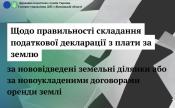 Управління оподаткування юридичних осіб ГУ ДПС у Вінницькій області інформує про особливості складання податкової декларації з плати за землю за нововідведені земельні ділянки або за новоукладеними договорами оренди землі.