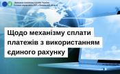 Інформація про реквізити єдиного рахунку розміщується на офіційному веб-порталі ДПС, Казначейства, Єдиному державному веб-порталі електронних послуг “Портал Дія”, а також є доступною платнику в електронному кабінеті у день його включення до реєстру платників, які використовують єдиний рахунок.