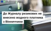 Упродовж останнього тижня роботи до Журналу ризикових не внесено жодного платника з Вінниччини. Про це інформує управління з питань виявлення та опрацювання податкових ризиків ГУ ДПС у Вінницькій області.