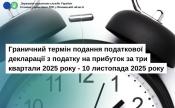 Граничний термін подання податкової декларації з податку на прибуток за три квартали 2025 року - 10 листопада 2025 року