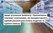 Щодо уточнення реквізиту “Призначення платежу” платниками, які використовують єдиний рахунок для сплати податків та єдиного внеску