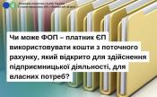Чи може ФОП – платник ЄП використовувати кошти з поточного рахунку, який відкрито для здійснення підприємницької діяльності, для власних потреб?