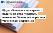 На збільшення податкових зобов'язань з податку на додану вартість подано 191 уточнюючих розрахунків на суму 4,4 млн гривень, що становить 23,5 відсотків від загальної кількості поданих уточнюючих розрахунків.
