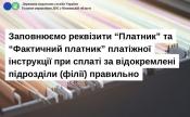 Головне управління ДПС у Вінницькій області звертає увагу, що юридичні особи (далі - головні підприємства) під час сплати податків, зборів, інших платежів та єдиного внеску за відокремлені підрозділи (далі - філії) (у випадках, передбачених Податковим кодексом України) заповнюють усі обов’язкові реквізити платіжної інструкції, у тому числі: