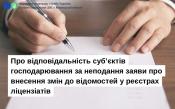 Про відповідальність суб’єктів господарювання за неподання заяви про внесення змін до відомостей у реєстрах ліцензіатів
