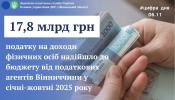 Від податкових агентів Вінниччини у січні-жовтні 2025 року надійшло до бюджету 17,8 млрд грн податку на доходи фізичних осіб.