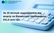 За 10 місяців надходження від акцизу на Вінниччині перевищили 541,5 млн грн