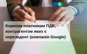 ГУ ДПС у Вінницькій області нагадує, що якщо електронні послуги надаються нерезидентом (компанією Google) резиденту (юридичній особі) – платнику ПДВ, то за такою операцією резидент (юридична особа) як отримувач послуг від нерезидента зобов’язаний нарахувати податкові зобов’язання з ПДВ та скласти податкову накладну за правилом «першої події» на дату, яка визначається згідно з пунктом 187.8 статті 187 ПКУ.