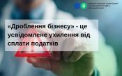 «Дроблення бізнесу» - це не оптимізація, а маніпуляція законодавчими нормами. В результаті бюджет несе великі втрати надходжень, які так потрібні для підтримки ЗСУ та малозахищених верств населення. Для прикладу, ДПС в ході перевірки виявила 7 торговельних мереж, які через схему «дроблення бізнесу» ухилялися від сплати податків. Тобто, юридичні особи штучно розподілили свою діяльність між десятками ФОП, які працюють за спрощеною системою оподаткування. Формально все нібито було розподілено між окремими, начебто незалежними, підприємцями. Проте, аналітичні дослідження довели, що ці ФОП пов’язані між собою: користуються одними й тими ж IP-адресами, мають спільні місця реєстрації, працюють у тих самих торгових точках, користуються однією торговою маркою та навіть мають спільних працівників. Усього виявлено майже 500 таких ФОП. Їхній загальний дохід становить понад 4 млрд гривень Тож внаслідок використання таких схем бюджет втратив майже 700 млн гривень.