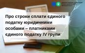 ГУ ДПС у Вінницькій області нагадує, що відповідно до підпункту 295.9.2 пункту 295.9 статті 295 ПКУ платники єдиного податку четвертої групи сплачують податок щоквартально протягом 30 календарних днів, що настають за останнім календарним днем податкового (звітного) кварталу, у таких розмірах: