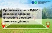 ГУ ДПС у Вінницькій області нагадує, що відповідно до підпункту 168.4.9 пункту 168.4 статті 168 розділу IV ПКУ суми податку на доходи фізичних осіб, нараховані податковим агентом з доходів, або фізичною особою, яка отримує доходи від особи, яка не є податковим агентом, за здавання фізичними особами в оренду (суборенду, емфітевзис) земельних ділянок, земельних часток (паїв), виділених або не виділених в натурі (на місцевості), сплачуються таким податковим агентом або такою фізичною особою до відповідного бюджету за місцезнаходженням таких об’єктів оренди (суборенди, емфітевзису).