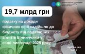 Від податкових агентів Вінниччини у січні-листопаді 2025 року надійшло до бюджету 19,7 млрд грн податку на доходи фізичних осіб.