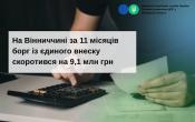 За інформацією управління по роботі з податковим боргом ГУ ДПС у Вінницькій області упродовж 11 місяців 2025 року забезпечено скорочення недоїмки із єдиного внеску із загальнообов'язкового державного страхування на 9,1 млн грн. Зокрема за листопад п. р. рівень недоїмки з цього збору скоротився на 1,8 млн грн (на 0,8 відс.).