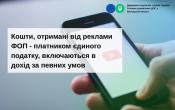 ГУ ДПС у Вінницькій області звертає увагу, що у разі якщо реклама YouTube, яка розміщується YouTube у відеоматеріалах, створених фізичною особою-підприємцем – платником єдиного податку, пов’язана з господарською діяльністю платника єдиного податку, то кошти, отримані від YouTube та зараховані на рахунок, відкритий у банківській установі в Україні для здійснення підприємницької діяльності (впродовж звітного періоду, але не пізніше річного податкового (звітного) періоду) включаються в дохід фізичної особи-підприємця – платника єдиного податку та оподатковуються у порядку згідно з главою 1 розділу XIV ПКУ.