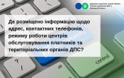 ГУ ДПС у Вінницькій області звертає увагу, що інформацію щодо адрес, контактних телефонів та режиму роботи центрів обслуговування платників розміщено: