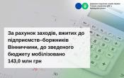 Управління по роботі з податковим боргом ГУ ДПС у Вінницької області інформує, що протягом січня-жовтня 2025 року, за рахунок вжитих заходів до підприємств–боржників, мобілізовано до зведеного бюджету 143,0 млн грн, в т.ч. до державного бюджету – 82,9 млн грн , до місцевих бюджетів – 60,1 млн гривень.