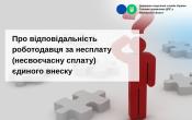 У разі несвоєчасної сплати або не в повному обсязі єдиного внеску до платника застосовуються фінансові санкції, передбачені Законом №2464, а посадові особи, винні в порушенні законодавства про збір та ведення обліку єдиного внеску, несуть дисциплінарну, адміністративну, цивільно-правову або кримінальну відповідальність згідно із законом (частина одинадцята ст. 9 Закону №2464).