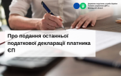 ГУ ДПС у Вінницькій області нагадує, що остання податкова декларація платника єдиного податку подається за податковий (звітний) період, в якому проведено державну реєстрацію припинення підприємницької діяльності, з наростаючим підсумком з початку року, в один із таких способів: