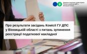 Управління з питань виявлення та опрацювання податкових ризиків ГУ ДПС у Вінницькій області інформує, що з 25.12.2025 по 31.12.2025 було проведено 3 засідання Комісії ГУ ДПС у Вінницькій області з питань зупинення реєстрації податкової накладної/розрахунку коригування в Єдиному реєстрі податкових накладних.