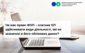 Враховуючи те, що здійснення видів діяльності, не зазначених у реєстрі платників єдиного податку, є підставою для переходу платника єдиного податку на загальну систему оподаткування, фізична особа – підприємець – платник єдиного податку не має права здійснювати види діяльності, які не зазначені в його облікових даних.