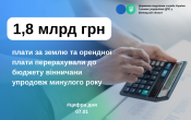 Минулоріч вінничани перерахували до бюджетів майже 1,8 млрд грн земельного податку та орендної плати