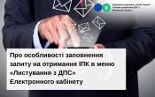 Про особливості заповнення запиту на отримання ІПК в меню «Листування з ДПС» Електронного кабінету