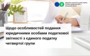 Управління оподаткування юридичних осіб ГУ ДПС у Вінницькій області нагадує про особливості подання юридичними особами податкової звітності з єдиного податку четвертої групи.