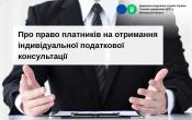 ГУ ДПС у Вінницькій області нагадує, що відповідно до абзацу першого п. 52.1 ст. 52 Податкового кодексу України за зверненням платників податків у паперовій або електронній формі контролюючий орган, визначений п.п. 41.1.1 п. 41.1 ст. 41 ПКУ, надає їм безоплатно індивідуальні податкові консультації з питань практичного застосування окремих норм податкового та іншого законодавства, контроль за дотриманням якого покладено на такий контролюючий орган, протягом 25 календарних днів, що настають за днем отримання такого звернення даним контролюючим органом.