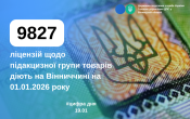 На Вінниччині на 01.01.2026 року діють 9827 ліцензій щодо підакцизної групи товарів.