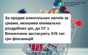 За продаж алкогольних напоїв за цінами, меншими мінімально роздрібних цін, до СГ з Вінниччини застосують 576 тис. грн фінсанкцій