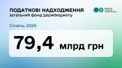До загального фонду держбюджету у січні 2026 року надійшло 79,4 млрд грн (91,8% плану) податків та зборів, які контролює ДПС. Про це на своїй сторінці у Facebook повідомила в. о. Голови ДПС Леся Карнаух.