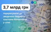У січні платники Вінниччини перерахували до зведеного бюджету 3,7 млрд грн