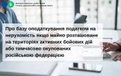 Згідно з абзацом дев’ятим п.п. 69.22 п. 69 підрозд. 10 розд. ХХ «Перехідні положення» ПКУ при обчисленні бази оподаткування податком на нерухоме майно, відмінне від земельної ділянки, контролюючий орган не враховує об’єкти нерухомості, у тому числі їх частки, що розташовані на територіях активних бойових дій або на тимчасово окупованих російською федерацією територіях України, включених до Переліку територій, які перебувають у власності фізичних осіб та за якими відповідно до п.п. 69.22 п. 69 підрозд. 10 розд. ХХ «Перехідні положення» ПКУ податок на нерухоме майно, відмінне від земельної ділянки, не нараховується і не сплачується. Положення абзацу дев’ятого п.п. 69.22 п. 69 підрозд. 10 розд. ХХ «Перехідні положення» ПКУ застосовуються до зазначених об’єктів нерухомості за період з 01 січня 2025 року до останнього числа місяця, у якому завершено активні бойові дії або тимчасову окупацію на відповідній території.