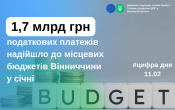 До місцевих бюджетів Вінниччини у січні надійшло 1,7 млрд грн податкових платежів.