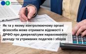 Управління податкових сервісів ГУ ДПС у Вінницькій області інформує, що згідно з п. 70.3 ст. 70 Податкового кодексу України від 02 грудня 2010 року №2755-VI до інформаційної бази Державного реєстру фізичних осіб – платників податків (далі – Державний реєстр) включаються такі дані про фізичних осіб, зокрема про джерела отримання доходів, суми нарахованих та/або отриманих доходів, суми нарахованих та/або сплачених податків.