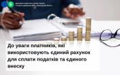 До уваги платників, які використовують єдиний рахунок для сплати податків та єдиного внеску