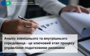 Одним із ключових етапів цього процесу є опис і аналіз зовнішнього та внутрішнього середовища виникнення податкових ризиків.